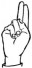На ћирилици написано ВАЛЕНТИНА ГАЋЕ састоји се из 13 слова [?]. Исписано ћириличном једноручном азбуком за глувонеме: